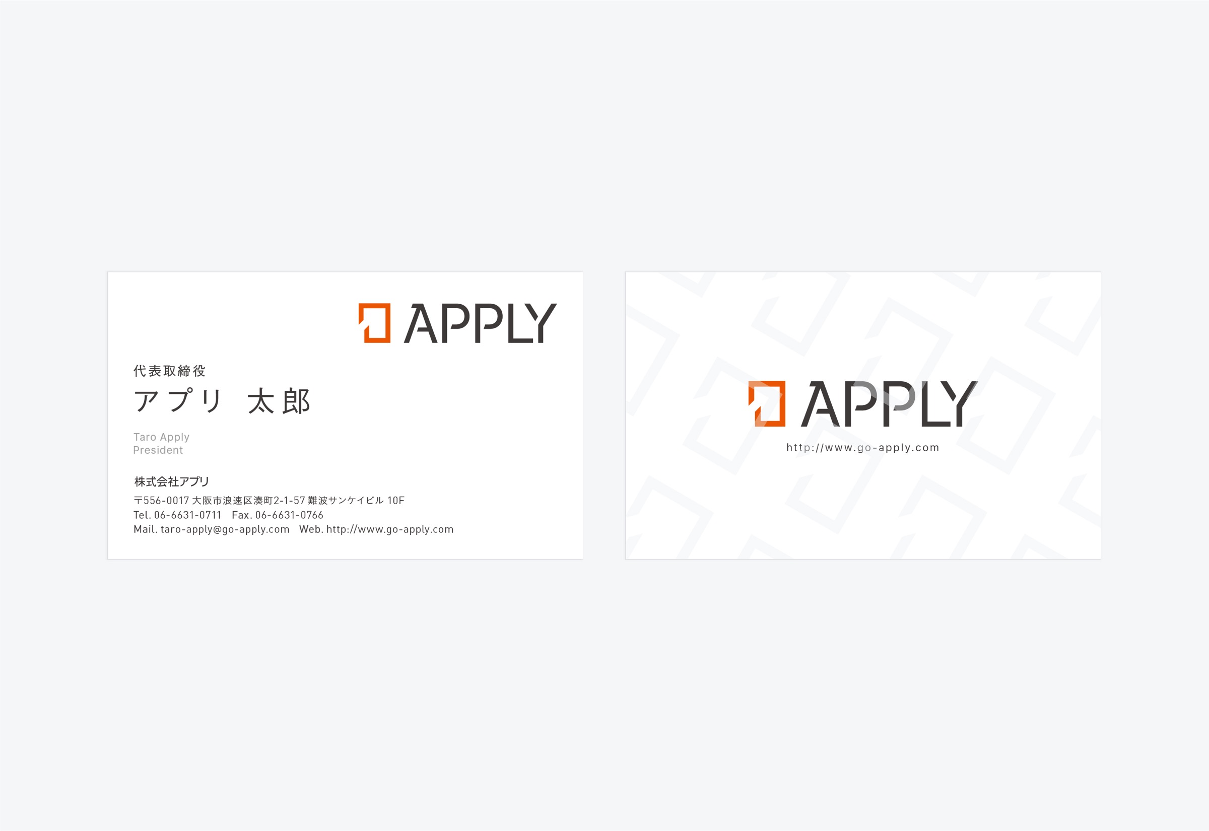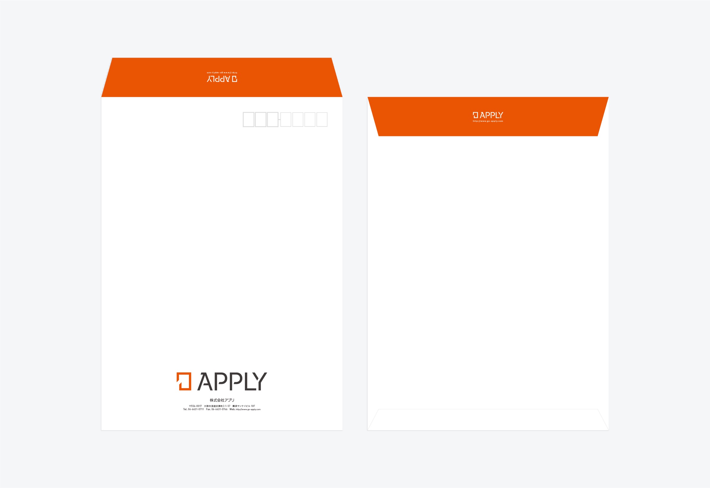 大阪でマイコン開発などを行うAPPLYのブランディングです。 プログラミングでのマイコン開発を主軸とした事業を展開していることから、「決定」の意味を持ち、一行ずつ着実に進んでいく様子をイメージさせるエンターキーをモチーフとしたロゴマークを制作しました。 ブランドロゴ、名刺、封筒などをデザインしています。